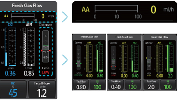 Оптимизатор низкого потока в режиме реального времени предоставляет инструкции по экономичной оптимизации потока свежего газа и анестетика. Измерение анестетика позволяет в реальном времени контролировать расход препаратов и сокращать затраты.