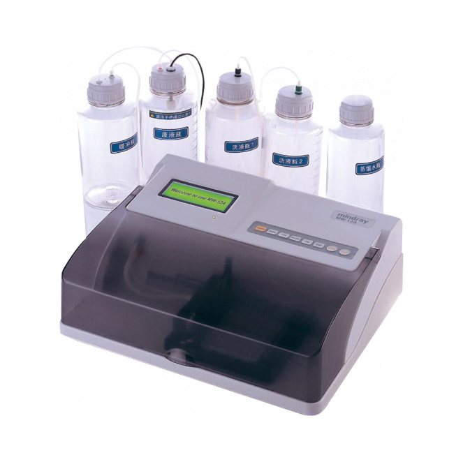 Работающий в полуавтоматическом режиме промыватель микропланшетов модели Mindray MW-12A эффективен и высокопроизводителен, а также характеризуется низким объемом остающейся жидкости. Он применяется с луночными планшетами 96/48 в трех основных конфигурациях дна (плоская, конусовидная и округлая формы).